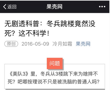 比如把果殼網(wǎng)的《無劇透科普:冬兵跳樓竟然沒死?這不科學》分享到朋友圈的人心理活動往往是這樣的,“看,我還了解這些哦,我是一個相信科學的人”。分享創(chuàng)意類文章的人想要表明自己是一個有趣的人。分享活動類的文章說明你很上進。